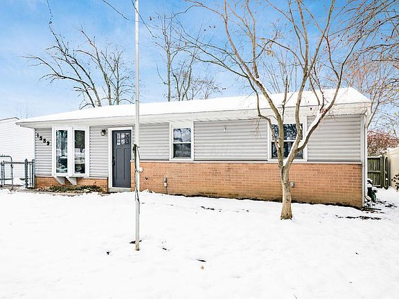 This updated ranch home blends modern style with easy, single-story living. Inside, the open layout welcomes you with new flooring, fresh paint, and a bright living area anchored by a large picture window. The completely remodeled kitchen features new cabinets, butcher block countertops, stainless steel appliances, a subway tile backsplash, and an island with bar seating—great for casual meals or extra prep space. The remodeled bathroom offers clean, contemporary finishes with updated tile, fixtures, and storage. All three bedrooms have neutral tones and updated flooring, giving you simple, move-in-ready spaces to personalize. A dedicated first-floor laundry room adds extra convenience. Outside, the fenced backyard offers room for pets or light outdoor use, and the detached garage provides additional storage or workshop potential. Located just minutes from I-70, commuting into Columbus or surrounding areas is quick and easy. With thoughtful updates throughout and a fresh, modern feel, this home is truly move-in ready and a great fit for anyone looking for low-maintenance living with stylish updates already done.