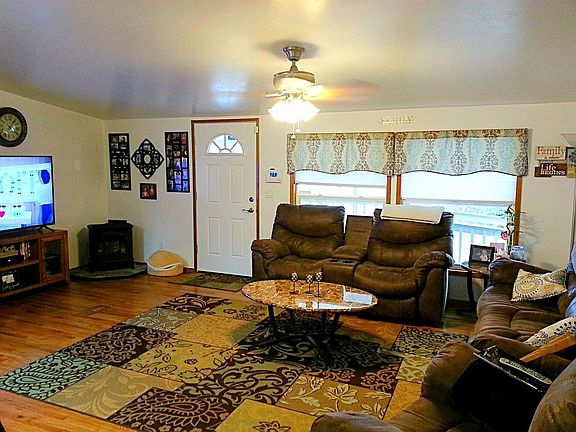 Come see this updated 3 bed, 2 bath manufactured Double Wide home with a Large detached shop w/HVAC! This 1 acre property is close to town, and is perfect for anyone with a serious need for a beautiful work shop. The shop also has plenty of storage space in the loft areas above. There have been some great improvements including granite counters and island, solid hardwood flooring, a beautiful walk-in Master shower, and of course the custom back patio with a private hot tub! Don't miss out on this beautiful home! New Heat Pump in 2013, New Roof in 2012 and new On Demand Gas Water Heater in 2015.