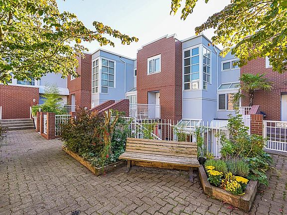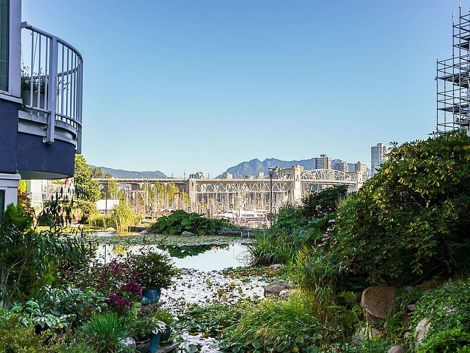 False Creek Living! This quiet townhome faces towards false creek and the Marina. Boasting 2 oversized patios including a private garden patio at the entry and a second patio off the living room with views of the lagoon and False creek. Excellent layout flows from entry to bright dining room to cozy living room with a wood burning fireplace that steps out to the patio. Den can be used as a second bedroom! Kitchen appliances have been fully updated. Unbeatable location, right on Granville island with restaurants, shops, transit, sea busses and activities at your fingertips. Well kept and move in ready! 1 parking and storage included. City of Vancouver Lease Property prepaid to 2046. Priced below assessed value!