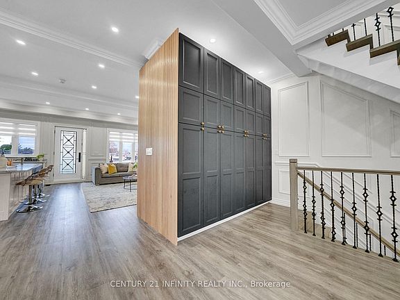 Welcome to this Stunning 4 Bedroom Home with Elegant Design & Modern Touches. The open concept main floor boasts 10 ft coffered ceilings, elegant wainscoting and eye catching wrought iron details throughout. Sunlight pours through large, bright windows, highlighting the ornate staircase that serves as a stunning focal point. The modern kitchen and striking feature wall with sleek cabinetry make this the perfect space for entertaining and everyday living. Upstairs, 9-foot ceilings and skylights enhance the spacious feel, leading to four generously sized bedrooms. The primary bedroom features a large walk-in closet and a 5 piece ensuite. The 2nd Bedroom offers a 4 piece semi-ensuite. As an added bonus, laundry is conveniently tucked away for easy access from the bedrooms. The lower-level separate living space offers flexibility with a private entrance from the backyard. Featuring large above-grade windows, pot lights, and 9-foot ceilings, this bright and airy space includes a modern open-concept kitchen and living area, a spacious bedroom, in-unit laundry, and a 3-piece bath. This Home is conveniently located to public transit, shopping, and all amenities. Minutes from the 401. With its versatile layout and exceptional design, this home is truly a must-see.