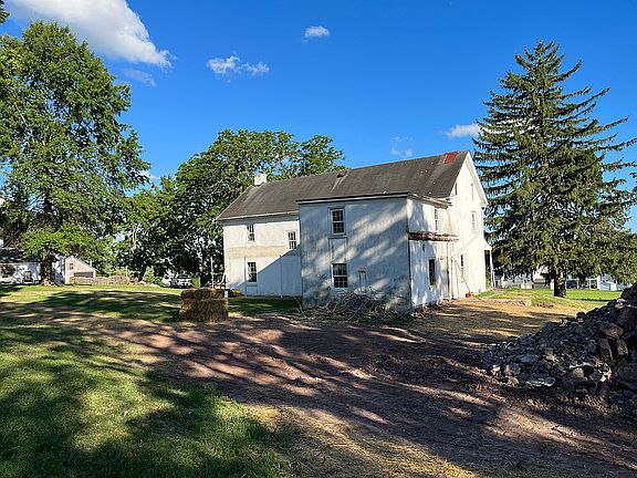 9 acre farm property with 2600 LF property line, 4 acre meadow below and sloped field with southern exposure above. 3000 sf stone farmhouse and brick front stucco front. 80x46 Pennsylvania Bank barn with full length forebay. 20x40 carriage shed and 50 ft high concrete silo.