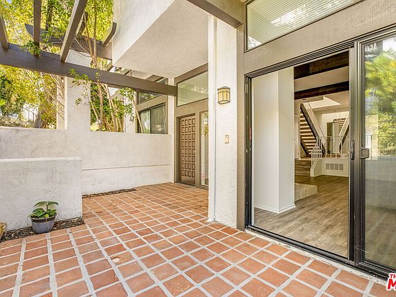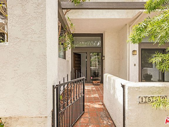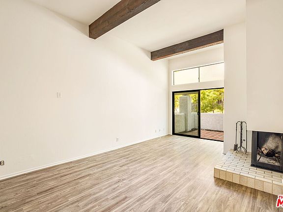 On the quiet curve of Palisades Drive, this expansive townhome unfolds with over 2,000-square-feet of natural light, volume, and functional design in the Palisades Highlands. A gated front entry leads to a dramatic interior where soaring beamed ceilings crown the main living room, anchored by a wood-burning fireplace and framed by sliding doors that open to a fenced terracotta patio ideal for al fresco dining or quiet evenings under the stars. The living room flows effortlessly up to a formal dining area and built-in bar with an elevated vantage point ideal for entertaining. The adjoining kitchen features stainless steel appliances including double wall ovens, a reverse osmosis water system, and a dedicated breakfast nook illuminated by soft morning light. Around the corner, a powder room completes the main level. Upstairs, the expansive primary suite is a true retreat, with vaulted ceilings, two generous walk-in closets, a spacious en-suite bath with dual vanities, and sliding glass doors that lead to a private balcony with mountain vistas. The upper level continues with two guest rooms and a second full bath, offering flexibility for guests, an office, and more. Additional highlights include an attached two-car garage with direct access, ample storage, and in-unit laundry. Recent upgrades include the HVAC system, dishwasher, and washer/dryer -- all completed in 2018. Residents enjoy exclusive access to a beautifully updated gym with a sauna, pool, and spa, surrounded by lush grounds and canopied hillsides. Set just moments from beloved local hiking trails and a quick drive from Palisades Village, 1559 Palisades Drive offers the ideal opportunity to live in one of the most sought-after enclaves on the Westside.