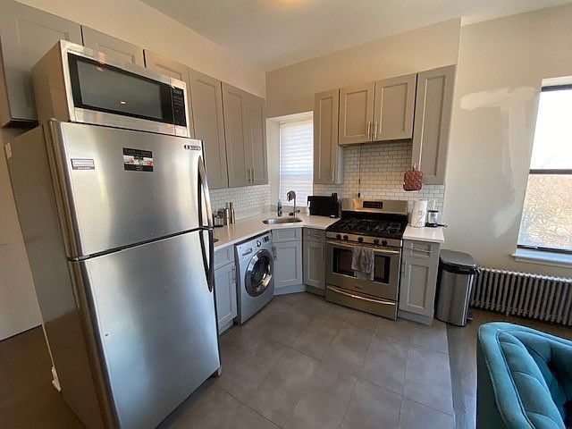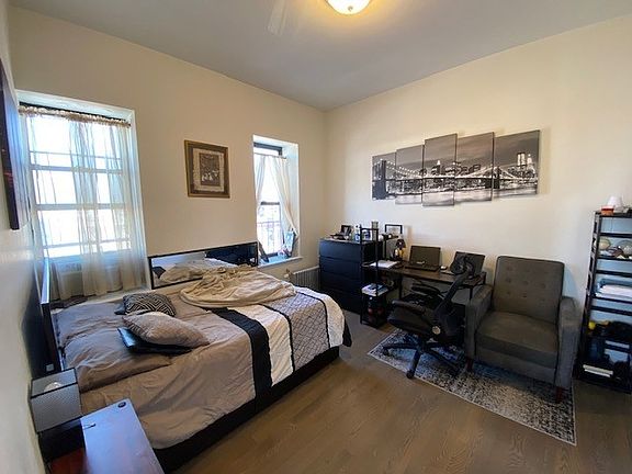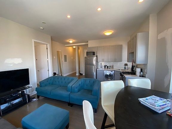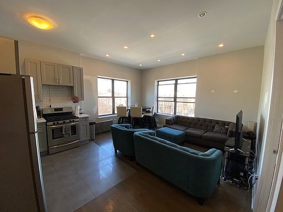 *NO FEE* ; *TRUE 2 BED* ; *LAUNDRY IN-UNIT* Gorgeously renovated + sun-drenched two-bedroom apartment with skyline views. The kitchen is perfect for those who love to cook! It is fully equipped with stainless steel appliances- inclusive of a dishwasher, built-in microwave, gas range oven, and refrigerator. The kitchen features soft close cabinets. Washer/Dryer in the kitchen as well. The bathroom is large, has a window, and has a deep soaking tub. One bedroom is well-appointed to accommodate a king-size bed + extra furnishing. The second bedroom can comfortably accommodate a queen-size bed + extra furnishing. Both bedrooms have closets, and so much sunlight your plants will thank you! This 4 story walkup apartment building is located on a prime, tree-lined quiet block in the heart of Crown Heights near all shopping, boutique stores, restaurants, schools, a short walk to the Brooklyn Botanical Garden, the Brooklyn Museum, and Prospect Park. Short walking distance to the (3/4) train line placing you within 20 minutes of downtown Manhattan. The building features a live-in super + repairman, a bright and clean entryway/lobby, and a virtual doorman for extra security. Pets Allowed ; Guarantors Accepted ; Roommates Welcome Video Tour Available Upon Request Contact Jadine to view *TODAY!*