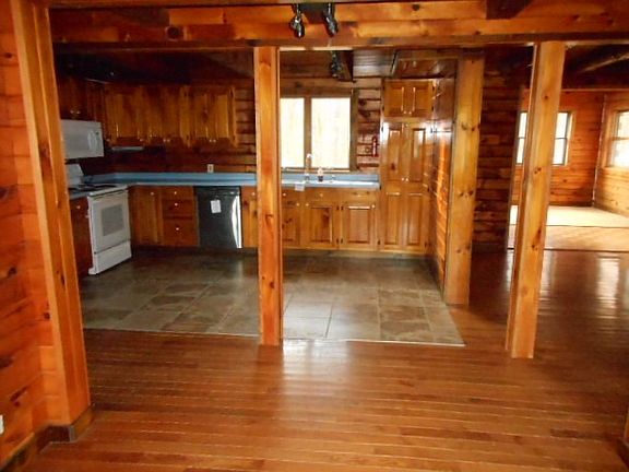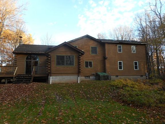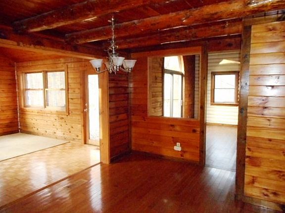 HUGE PRICE REDUCTION! Beautiful log home with soaring ceilings and wrap deck. Full walkout basement. Possible 5th bedroom. Serene 7.34 acre wooded lot. Amazing deal at this new price!! CASH OR REHAB FINANCING ONLY. ELECTRIC AND WATER CAN NOT BE TURNED ON FOR INSPECTION OR APPRAISAL.