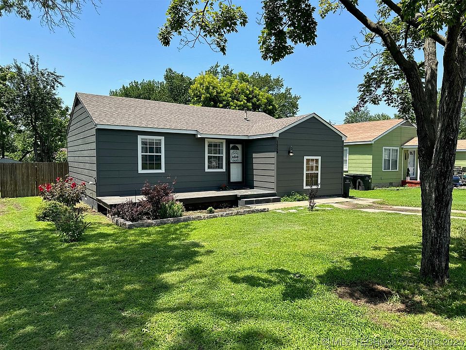 Remodeled Bungalow in Bartlesville, located on a nice well kept street. This charmer has much to be desired... A large covered patio in back with lots of shade, fully fenced yard & shed. New kitchen appliances, paint, flooring and bathroom. Roof 2020. This 1948 home has new wiring and plumbing throughout. Garage was converted into another bedroom, there is an additional finished loft area. Home was taken to the studs and has newly insulated walls and ceiling fans for better efficiency. Exterior is made of LB smart siding and freshly painted. Don't wait to see this home and make it yours.