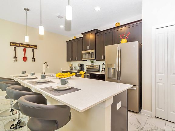 Modern-Luxury Townhouse at Champions Gate Vacation Resort in Orlando, FL. Located in a Private Gated and Golf Community, this Home comes Completely Furnished, including all Appliances. This is a Short Term Rental and Income Producing Property, Constantly booked by Vacationers visiting the area. It features 4 Bedrooms/3 Bathrooms with a Well equipped Kitchen, Laundry Room, Flat Screen TV's and Private Pool. Accommodates up to 12 guests. New Owners, Guests and Tenants will have complete access to the Resort Oasis Club House Amenities which include: Pools, Water park, Lazy River, Restaurant, Tiki Bar, Fitness Center, Theater, Sand Volleyball Court, Business Center, Arcade,etc. Conveniently located 15-30 minutes to Orlando theme Parks. Become a Host of your Own Rental Home Today.