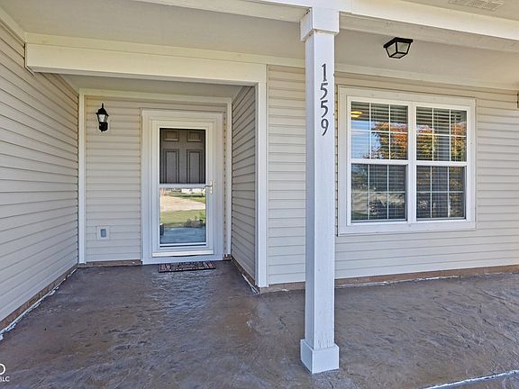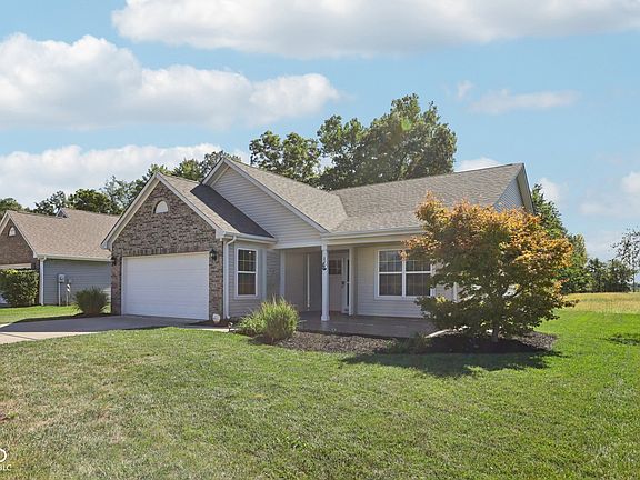 Quiet and Peaceful. 4 BR/2 BA One Owner, All Electric, Ranch home w/ Open Floor plan is ready for those looking to escape the hustle and bustle of life. Cathedral ceilings Highlight the main living area. Huge Kitchen, perfect for entertaining, features tons of counter top/cabinet space, breakfast island, pantry and all appliances stay. Primary BR has walk in closet, garden tub/shower and dbl sinks. French door entry BR4 could be office or dining room. Finished Garage boasts epoxy coated floors and daylight window. Expanded stamped concrete covered front porch perfect for relaxing outdoors. New landscaping, Water Heater 2025, Roof 2020, Interior paint 9/25. Backyard faces small gravel rd, tree line and open field. Well maintained, clean & crisp home is waiting for you. Walking distance to schools or library. 2 rooms virtually staged.