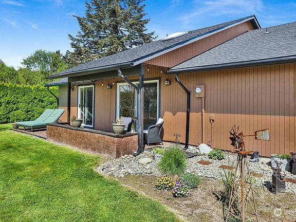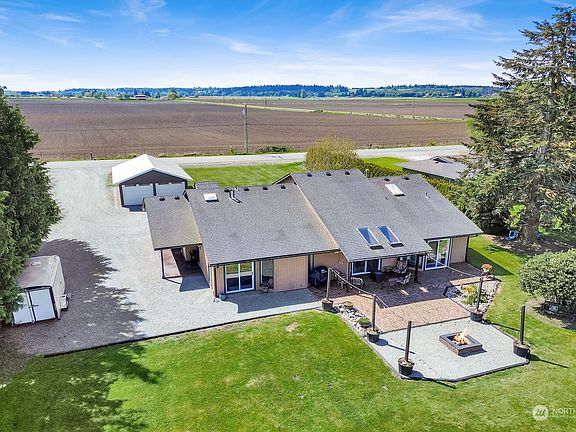 Experience views of the mountains & Skagit Valley from this 1-acre property in Bow! This flat & fertile lot is perfect for gardeners, boasting rich soil & a ready-to-plant vegetable patch. Enjoy outdoor living with two patios & ample entertainment space. The 2-bedroom rambler features a unique architectural design, with contemporary angles, oversized windows, & multiple skylights. The open floor plan offers flexibility for living or remote work, & there's potential to add a third bedroom. The detached 2-car garage offers additional storage or workshop space, perfect for your projects. Located in a peaceful setting, you're just 2 minutes from Chuckanut Dr & 8 minutes from I-5. This property is a canvas for your dreams!