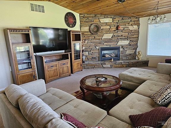 Welcome to your dream home in one of Caldwell's most sought after neighborhoods! This stunning residence offers a unique Circular floor plan, creating a perfect blend of indoor and outdoor living. The spacious living room features a cedar vaulted ceiling and Oakley rock fireplace. Step into the heart of the home-a beautifully updated kitchen and dining combo featuring sleek Quartz counter-tops and a stylish laminate flooring. This open concept space is perfect for entertaining or cozy family meals. Just off the kitchen discover a delightful beer tap and wine room, ideal for grabbing your favorite beverage before stepping through the elegant French doors to the expansive backyard. The backyard is an entertainer's paradise, boasting a large patio with stamped concrete, a built in Barbecue Grille with a granite slab, and a refrigerator for ultimate convenience. Relax in your private hot tub, perfect for unwinding under the stars. This is a one-of-a-kind retreat. Welcome Home.