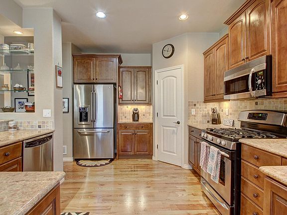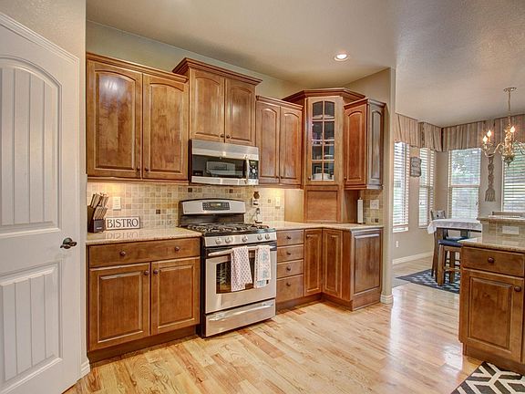 This is a former model home; loaded with high end finishes in and out. The exterior appeal is lovely, positioned on a generous .26 acre corner lot with a view that will take your breath away. The lot is perfectly proportioned, with a tidy back yard and and extensive front yard where you will spend most your outdoor time enjoying the view, patio and meeting the neighbors. Established trees and perennials add a nice pop of color to the Stucco/Stone exterior making this outdoor space welcoming. Dream kitchen boasts slab granite, upgraded cabinets and gleaming stainless appliances. The Great room is accented by gas fireplace, vaulted ceilings, lots of windows and office just speaks cozy with the rich finishes. Enjoy the expansive basement complete with a Lg family room w/bar area and 3 additional BR's, one with a private bath (great teen suite or guest room!). Most rooms are complete with custom window treatments or other unique features making this home feel like a one of a kind.