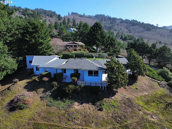 Exceptional location in Harbor Hills with potential panoramic ocean views and Harbor bench with some tree topping of which were planted by the homeowner years ago. This 3 bedroom, 2 bath sprawling ranch style home has so much potential. Personalize with the updates and color choices of your liking once you are the new owner. There is a cozy family room with woodstove and a living room with an open concept. Most all rooms have a view towards the ocean. Not only is there a good sized 2 car garage but there are additional garages one of which can house a 30 feet RV or boat plus a shop with a view. Property is terraced with apple and pear trees, borders a creek and offers nice privacy. The Banana Belt climate is amazing and location is ideal near the Port of Brookings Harbor and several beaches. Call for tour.
