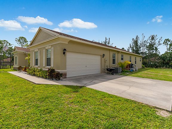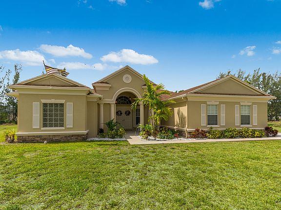 Owner says SELL! Large, beautiful CBS home in Loxahatchee. Walk in through your covered, lighted double door front entry to the spacious, open split floor plan. Vaulted, coffered ceilings and archways throughout add architectural interest to this elegant home. There are 4 bedrooms, 3 baths plus a Den/office that could be a 5th bedroom as it has small closet and window. Neutral, ceramic tile. Eat in, sunny kitchen with granite counters, stainless steel appliances and large walk-in pantry. Relax in your private master suite with tall windows, 3 walk in closets and plank flooring. Luxurious master bath includes a soaking tub, water closet, his and her vanities and huge shower. Big, screened patio. New exterior paint. Newer A/C units. Security system. Lot is high and dry.