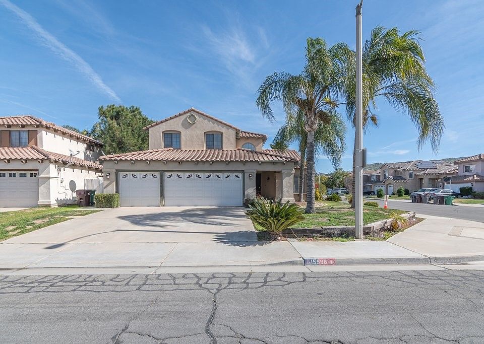 Welcome to 15596 Carmel Verde Lane, located in the highly desirable community of Moreno Valley Ranch. Situated on a large corner lot this 4 bedroom 3 bathroom home is ready for you to call it home. As you walk in you will notice the high ceilings in the living/dining room and tile floors. The kitchen is open to the family room which features a cozy gas fireplace. There is a bedroom and full bathroom on the first floor perfect for guests or the mother-in-law. The indoor laundry room is conveniently located on the first floor. Step into the large 3-car garage and you will notice there is plenty of room for all your toys. Upstairs you will find 2 additional spacious bedrooms and a full bathroom. The large primary bedroom features vaulted ceilings and an en-suite bathroom with dual vanities. Moreno Valley Ranch offers amenities to appeal to any lifestyle, with a 35-acre lake, water activities, a community pool, fitness centers, a large resident-only recreation center, and both private and public parks within the community. You can't ask for a better location, very close to, schools, shopping, and freeways. This home is priced to sell, don't miss the chance to start living the good life in Moreno Valley Ranch.