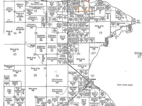 155 acres M/L all wooded with about 670ft of frontage on the St. Mary's River. Clay Road is paved and touches one corner of this property. The land near the road is large Maple trees and sandy soil. The remainder is Spruce, Cedar and Aspen. There are 5 deer blinds. There is not currently a road down to the water. The property is on E. Clay Road north of Raber.