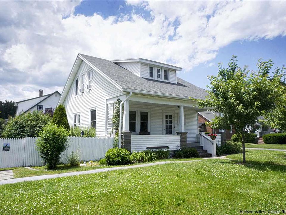 This charming updated craftsman style bungalow will no doubt be cherished by its next caregivers, for sure. It's really warm and inviting thanks to the refinished fir floors, high ceilings, and nicely proportioned rooms. The woodwork and floors provide the look of character, substance and a solid longevity. Its lovely modern kitchen is bright and inviting residents to partake of wonderful meals, perhaps prepared with produce grown in the terrific side yard gardens. There are two bedrooms on the main floor and two on the second level. The larger one on the second floor functions currently as an artist's studio. There is also a full bathroom on each level. For occupants needing home office(s) this set-up is ideal. The double hamlet lot (with two parcel IDs) is so open and inviting. It will be wonderful for an avid gardener or a relaxing homeowner alike. These grounds, and the front porch, are definitely highlights of this appealing home. While I was sitting on the spacious front porch, I noticed the number of neighbors walking the quiet streets of this older part of Port Ewen. It was so nice to see this lifestyle. The home is located just blocks off vital Route 9W and Port Ewen's Main Street, yet it is a tranquil mecca, off the beaten path. It is minutes away from access points on the Hudson River, if water activity is your thing. The shops and providers in Pt. Ewen are moments away, and, the plethora of dining opportunities in the Rondout district of nearby lower Kingston, are also a wonderful plus. Access is very easy to Metro North in Poughkeepsie, AmTrak in Rhinecliff, and the big box stores on Ulster Avenue, Kingston. Imagine watching the sunrise over the Hudson to your east, from the front porch...if you're an early riser.