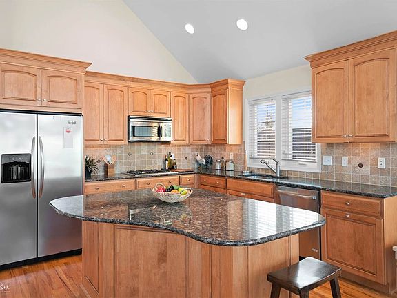 - Cathedral Ceilings, Fireplace- Gas, Wood Flooring, Storage, Walk in Closet, Smoke/Fire Alarm, Tile Flooring, Kitchen Center Island, Bar