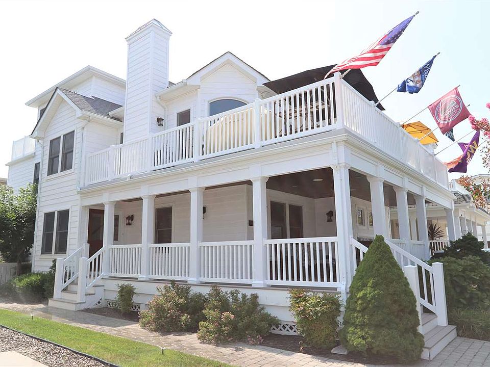 AVAILABLE FOR SHOWINGS AS OF MONDAY, JULY 22ND! This beautiful three-story upside down-style home is in the ideal "Park-n-Walk" location! Just 2.5 blocks to the beach and only a short stroll into town or to the boardwalk or Public Recreation Area at 12th Street. The boardwalk is the perfect setting for a relaxing walk or an invigorating run along the ocean front! ! You might also stroll over to the Public Dock at 23rd and the bay to watch the sunset! This is not a rental property; the home has been pampered with upgrades & maintained in meticulous condition. You'll love the unique rear yard "oasis", where mature trees create an uncommon level of privacy around the southern exposed paver patio area & oversized salt water pool, which was built prior to the implementation of the more restrictive zoning regulations that result in smaller pools. The floor plan features 5 bedrooms (4 of which have their own private bathroom), 5 Full Bathrooms, a Powder Room, a 1st Floor Family Room overlooking the pool, a Laundry Room, a garage with extra built-in storage areas, large decks on each level & more! The 1st Floor features an inviting covered porch, which is the perfect setting to enjoy the outdoors while escaping the heat of the sun. There are also 2 bedrooms, each with a private bathroom, and a Laundry Room & Powder Room with convenient access to the side yard/pool area. On the 2nd floor, there are 2 bedrooms and 2 bathrooms. There's plenty of room for family & friends to gather in the spacious, bright & airy Great Room, which features a soaring cathedral ceiling, fireplace and sliding doors leading to the spacious new deck. The privacy of the 3rd floor is reserved for the Master Suite featuring a walk-in closet, Jacuzzi tub and private sun deck. Additional highlights include: a paver driveway and walkway, mature landscaping with irrigation, a security system, central vac, speakers for sound throughout the property, granite tops throughout the home, hardwood flooring, wainscoting, stainless steel appliances and a large pantry. The home is sold very tastefully furnished. All wall hangings & outdoor furniture is excluded from the sale. See Addendum Section for additional Highlights & List of Many Improvements.