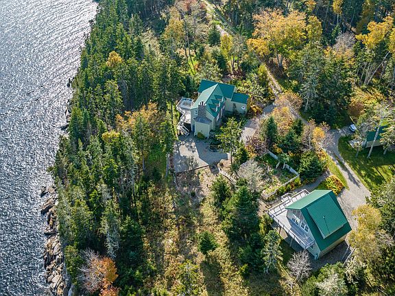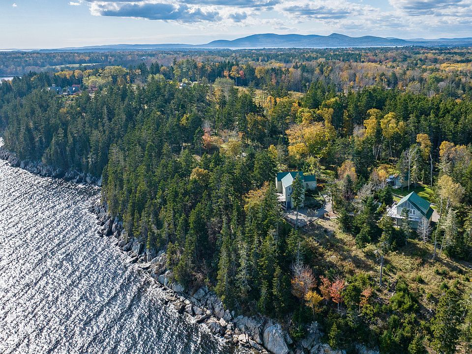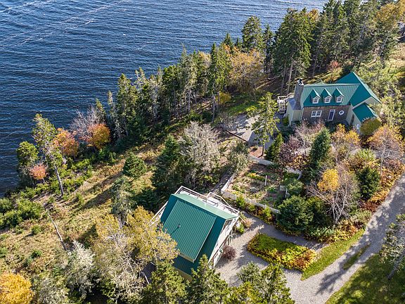 This 6.4+ acre Penobscot Bayfront compound of forested, bold coastline on the slopes of the second highest point on Islesboro -Abrams Mountain, is home to a recently custom-built, reproduction early New England extended cape mirroring that of century old coastal Maine dwellings. The kitchen and dining rooms invite guests to sit by the Birmingham 36'' open hearth fireplace overlooking the southeasterly spruce-dotted water views and deck that enjoys the Hartley botanic greenhouse. New and reclaimed wood floors, wainscoted painted wood paneling, a second living room fireplace and marble tiled baths are just teasers to the innumerable features in this distinctive home with a first-floor master suite. Underground power and broadband keep you connected and stay true to the island's esthetic. The independent guest house welcomes daily sunrises streaming over the expanse of the waterside decks into the intimately designed light-filled rooms above the multi-bay garage. The more recently built garden shed makes maintaining the gardens easy and enjoyable. Much of the landscape is centered on self-care plantings including natives mixed with compatible cherry, pear, apple, peach and other fruits, blueberries with forest shrubs and ferns and hardy Maine perennials mixed within the naturalized rock and wooded surroundings. The room and bath count includes the guest space above the garage. This meticulously built, intensely cared for and distinctive property characterizes Maine living on Islesboro; an island community that takes guardianship of its private life-style with earnest and is accessible by a twenty-minute ferry ride from the main land.