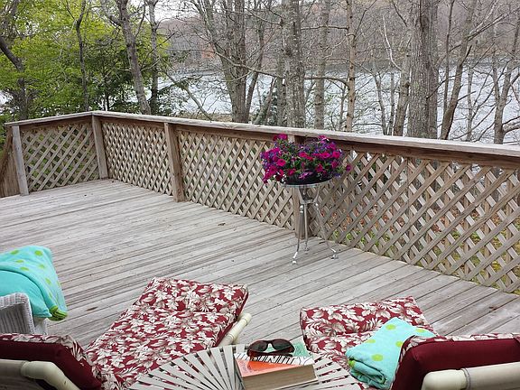 Sitting above the waters of Green Pond this tranquil oasis has beautiful water views and ocean breezes. The 1,421 square foot single story home has a great floor plan for easy living and a wall of glass sliding doors to maximize waterfront living. The large spacious waterfront deck provides the perfect spot for a summer barbecue and Green Pond is a kayak and boating delight. Boats can travel straight to Martha's Vineyard from here.