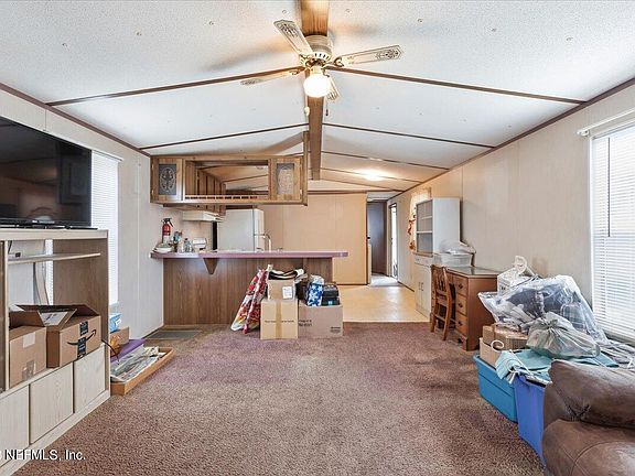 Exquisite three-bedroom singlewide mobile home nestled on an expansive double lot, enclosed by sturdy chain-link fencing. The kitchen appliances are part of the deal. Complete with a reliable generator, a convenient 50 amp RV hookup, a carport, and fencing featuring dual access gates. Step inside to discover a nicely maintained interior with light-toned walls and a cathedral ceiling.