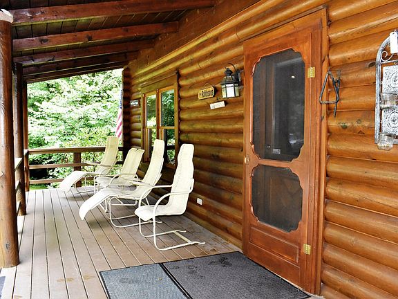 Magnificent log home on 4 1/2 serene acres. Warm welcomes abound this amazing home. Open great room , wood burning floor to ceiling stone fireplace, opens to kitchen & dining area. Gourmet Cook's dream kitchen with Viking stove & warming station above, 2 sinks, cabinetry ,granite, breakfast bar, pantry, & stainless appliances. Access to screened room & deck. Master suite and guest bedroom on main level. Upper level with bedroom & bonus room, loft area, full bath & lots of storage. Finished basement with full bath, media room with storage ,dry bar/buffett area, multipurpose room with cedar lined closet, gym area. Mechanical room with storage, w/shop area. Dual fuel H/A & humidifier. Generator, RV parking ,electric. Circular drive.1 yr H/W. An amazing home