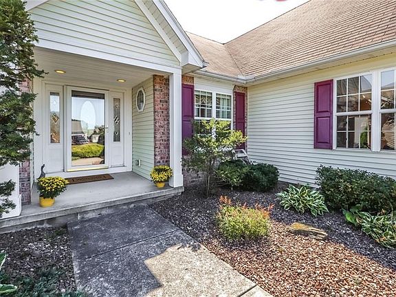 Custom built 2004 Spacious & Spotless 1577 sq ft Ranch~Welcome home to this light-filled open floor plan Ranch w/beautiful hardwood floors, split bedroom layout, Kitchen open to Great Room w/corner gas fireplace, oversized Master suite w/hdwd flrs., his & hers closets, 2 more bdrms & bath on opposite side of house. Beautifully finished Craftsman style staircase & built-ins in the finished bsmt-family room & private office or 4th bdrm, workshop & storage room. Furnace just cleaned/inspected. Partial fin. room above garage w/window -stair access in garage. Concrete D-way w/extra pad on side of garage~ Elec. Hook-up for portable generator~ Private rear yard with Stone patio, shed, mature landscaping - shows like a Model Home - don't miss it!