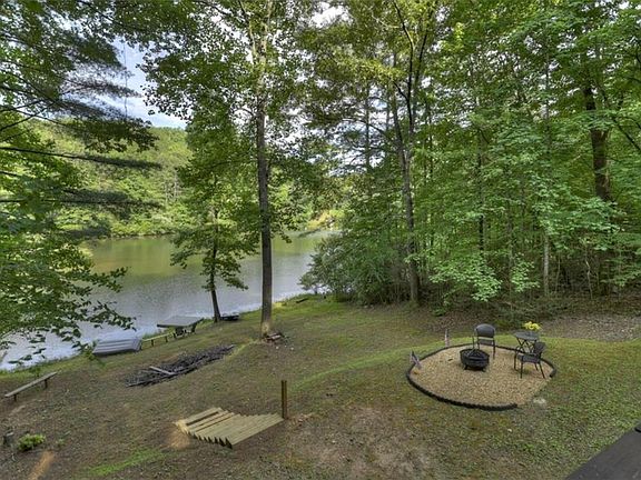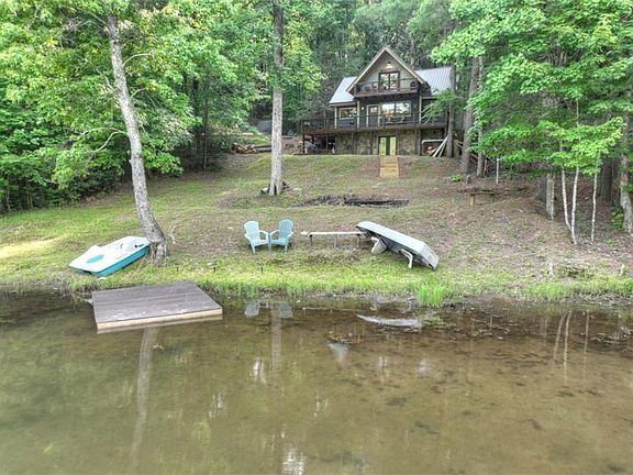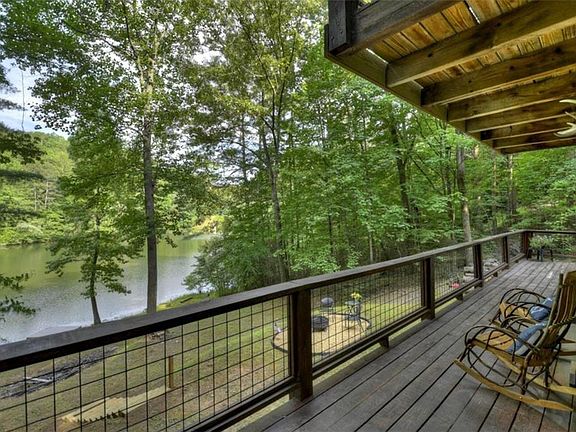 Super Cute Timber Frame Cabin with LAKE FRONTAGE on Sisson Lake, less than 10 minutes to Downtown Blue Ridge, only 1 mile off Hwy 515, all paved roads. Fantastic opportunity for a second home with income potential as a vacation rental. Newly Renovated, All NEW Everything! Selling Turnkey FURNISHED. One-of-a kind w/distinctive finishes throughout; exposed beams, built in bar, butcher block island, stone accents. 2BR/2BA plus an upper level loft for 3rd sleeping area. Every room has its own deck & entryway. (Unfinished basement has room to expand & plumbed for 3rd bath) Inviting outdoor living space w/6 decks, fire pit & floating dock on the spring fed LAKE. (NEW: roof, pella windows, electric, plumbing, hvac, flooring, fixtures, insulation, septic pumped, private well cleaned, wood stove re-piped; furnishings are new too!) Move-In Ready! Private gated driveway. NO HOA Fees