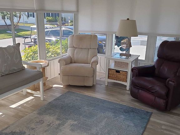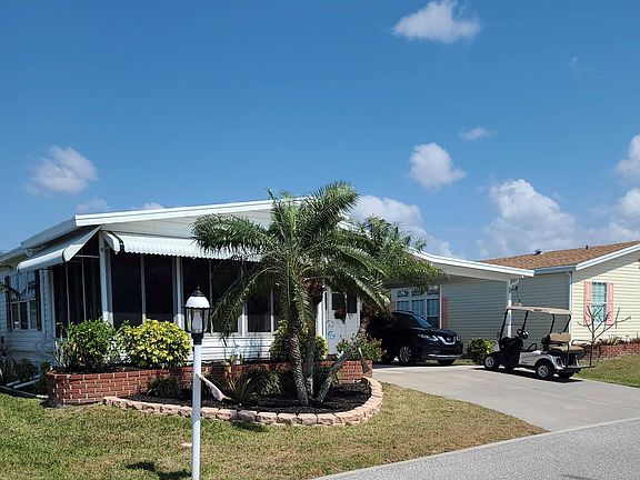 Come visit a piece of paradise, 2 bedrooms, 2 bath has a beach feel with upgrades galore!! The kitchen and living space have all been remolded. Lanai has new windows and AC. Very large carport with attached shed that has plenty of space for tools and more!! A must see!! This home is located in a primer community close to local attractions and beaches.