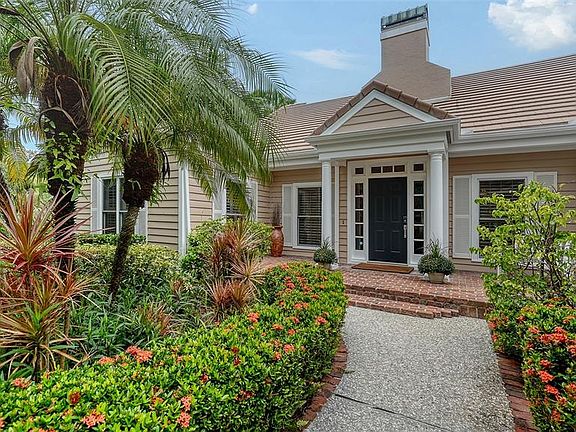 This stunning 3 bedroom, 3.5 bath home, designed by the renowned architect Frank Folsom Smith, stands out with its unique design. The charming Cape Cod style sets the stage for comfortable, graceful living. The home features a Sonos surround sound throughout. The backyard, overlooking the preserve, is a quiet sanctuary, where you can enjoy the open air, freeform pool with spa in complete privacy. The whole-house stereo system goes out to the enclosed back patio, making a lovely place to sit and enjoy a peaceful, rare rainy afternoon with a good book and a cuppa. There is an additional 732 square feet of outdoor deck space off the second floor and rooftop. Recent renovations in 2023 include two main bathrooms with high-end decorator tile, premium glass enclosures, and premium plumbing fixtures, including an elegant standalone bathtub. The powder room has also been completely renovated. The kitchen boasts new ceramic tile floors, backsplashes, an induction cooktop, an LG smart refrigerator, a farmhouse sink, and a garburetor. The laundry room features new ceramic tile floors, a washer and dryer, extensive shiplap walls, and a sliding hanging barn door to the pantry. The second-floor bathroom has new tub fixtures, shiplap walls, and a decorator granite sink area. Additional updates include crown moldings throughout the ground floor, new ceiling fans in all bedrooms and the den/office, with a decorator oversized 52-inch windmill fan in the main bedroom. The home also has new LED ceiling can lights, new plantation shutters in the front hall/foyer, and new Levolor blinds in the kitchen and laundry room. The pool area has been upgraded with a new heat pump pool heater, a new filtration system, and a new pool pump and motor. The lanai has new aluminum framing and screening with a screen door, installed in 2025. The second floor has a new flat roof by Curry Roofing with a warranty. The landscape has been renewed with new trees, bushes, sod, and flower plantings worth $20,000, completed in 2022. Premium decorator light fixtures have been added to the dining room, kitchen, and foyer. The entire house exterior was painted in August 2025, and a new second-floor deck was also completed in August 2025. The pristine condition of the lovely home, combined with the quiet, private setting on double lot at the end of a cul-de-sac, makes it the perfect Florida retreat for you and your loved ones. Situated in the enclave of Bishopscourt, a maintenance-free neighborhood behind the gates of The Oaks Preserve, lawn and landscape maintenance, as well as irrigation, are included in the homeowner’s association fees. You will delight in this graceful, inviting home.