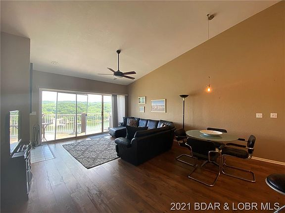 Commanding views of the Big Niangua from the top floor end unit. Vaulted ceilings, open floor plan, furnished as shown. Master suite has lake view, walk-in closet and double sinks. Full-sized washer and dryer included. Boat slip is 1st on left in center dock, 6500# hoist, per seller.