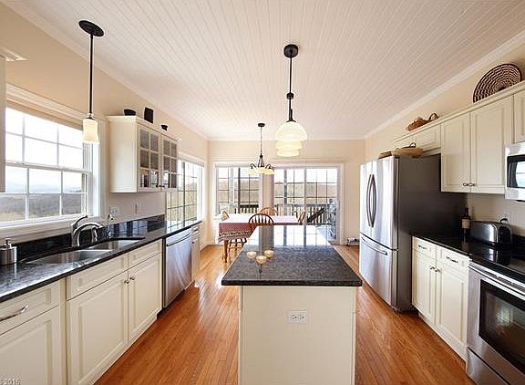 Stunning Blue Ridge Parkway-style views from this updated, immaculate mountain home. From pink mountain sunrises to dramatic skies at sunset, you will never tire of the million-dollar views from your deck. Well-appointed kitchen w/wood ceiling; granite & stainless apps; vaulted living room w/wood stove. Master on main w/ office/sitting area; master bath w/jet tub, separate shower, tile floor. Guest BR/bath on main; guest suite in basement. Approx 350 bsmt SF finished not counted in total SF.