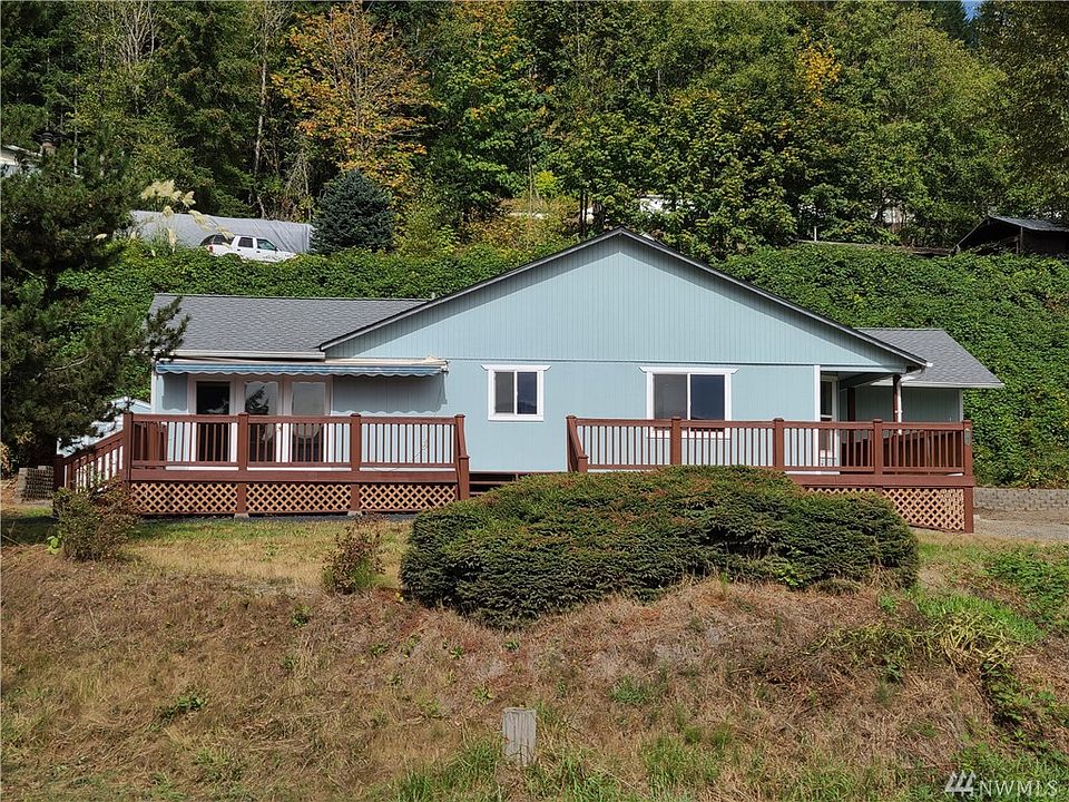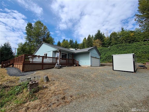 LOVELY 1996 COUNTRY HOME on almost an acre of land with Amazing Mountain Views and soothing creek as you enjoy your huge wrap around deck. It offers two living spaces with the kitchen and family room being open concept. Master bedroom w/ full master bath. Separate laundry room. Roof and heat pump is 2 years old. Newer laminate and microwave installed. Fresh exterior and interior paint. Newly stained deck. The washer, dryer, and upright freezer in the garage stay.