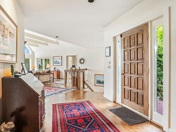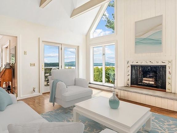 Perched on a very private 2 acre land parcel overlooking miles of Lake Sunapee's glistening waters - this upscale contemporary home features expansive living on 3 levels. Facing due south, wide windows in all principal rooms embrace dramatic lake, valley, mountain & garden views. Feel one with nature at every turn. The main level offers open concept living & dining with the bright sunny kitchen in the heart of this gorgeous home. Both living and flanking family rooms feature wood-burning fireplaces & big views. Easy transitions to an inviting wrap-around deck. The first floor primary suite offers spacious closets & a spa bath. Upstairs there are 2 bedrms w/adjacent bath, den & abundant storage. The lowest level includes a cozy media room w/fireplace. There are 2 bedrms w/adjacent baths. A large storage room opens to a grand day-light workshop. Pursue woodworking hobbies -or tailor this amazing space to your family needs. Browns Hill is one of the prime neighborhoods in Sunapee featuring 22 homes surrounded by 90 acres of conserved land. Walk or ride bikes to the swimming pool & tennis courts. A wide sandy beach on Lake Sunapee is best accessed by golf carts that follow a winding nature trail to and from the water. Option to purchase a boatslip at the community waterfront . This home has been virtually staged. Embrace year-round vacation fun at Browns Hill! Showings begin by appointment on 9/14/24.