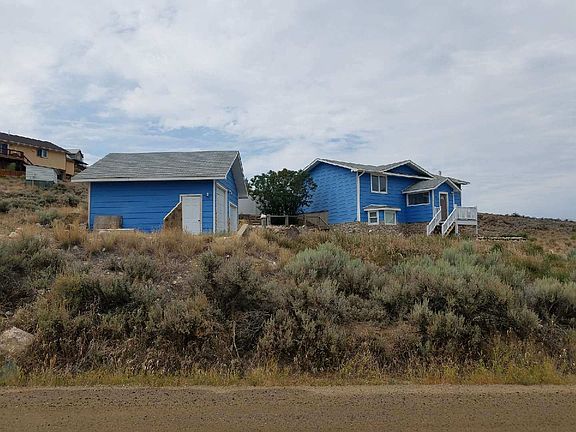 This house is perched just moments from town on one acre. Great views from you hot tub and with the fenced in back yard it is pet ready. New exterior doors have been ordered and are on their way. Lots of open space and light in the home. BLM land w single tracks and hiking just across the road. Detached 2 car garage also provides extra storage for all your winter toys. Year round access with maintained roads!