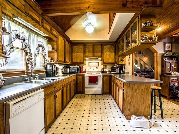 - Kitchen Features: Breakfast Bar, Cabinets Stain, Eat-in Kitchen, View to Family Room, Kitchen Island, Pantry Walk-In, Country Kitchen