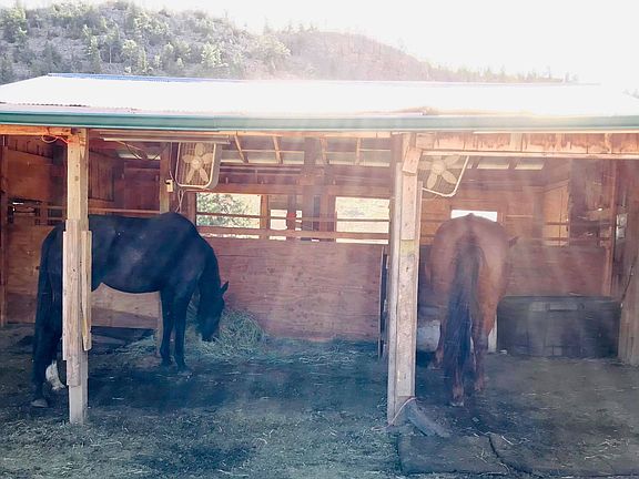 Fully remodeled log cabin on 35 acres, 40 minutes from the conveniences of town. Home features in-floor radiant heat in bathroom and mud room, all stainless appliances, gas 5-burner stove, granite countertops, new cabinetry, bamboo flooring and gas fireplace in living room. Bedroom is spacious and has a walk-in closet. Horse amenities include an outdoor arena, 2 stalls with runs and a run-in shed in the barn, a separate smaller run-in, separate feed/tack/blanket storage room, automatic waterer and ample turnout space in three separate pastures, all accessible from one primary "sacrifice lot". Property also features a fenced backyard for dogs, a duck coop and water feature in the front yard.
