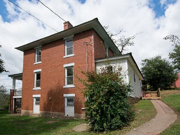 156 Chesapeake Street This two-story brick home near Ronceverte's Brick Hill has overlooked the town since William McKinley was President! Solidly built, it has withstood the test of time but could benefit from some upgrading. Includes fenced yard, large parking area & out building. Its century-old oak flooring, trim and doors are in good shape, and the yard, completely enclosed by a chain link fence, is a definite plus for kids or pets. A concrete sidewalk leads to the elevated front porch. The entry hall opens into the living room, which has a brick fireplace with a Buck Stove insert and wood mantel, a ceiling fan, & classic 10-inch baseboards common in homes of the era. French doors open from the living room to the dining room, which has a chandelier & a built-in china cabinet.