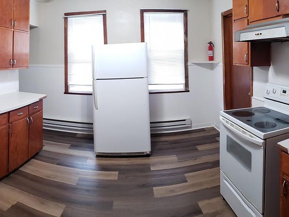2nd floor apartment. 2 Carpeted Bedrooms. Washer & Dryer hookups available. Spacious Living Room and Dining Room. New energy efficient windows. Off street parking in rear of building. Plenty of cabinets and counter space in Kitchen. Newly tiled around tub & shower. Property manager lives 25 minutes away and is on call 24/7. No pets. Property Owner pays for Cold Water. Renter pays Electricity, Heat (electric), Hot water (Gas), Phone, Air condition, Cable / Satellite. Off street Parking allowed in rear of building. Appliances: Refrigerator and Stove (electric) provided.