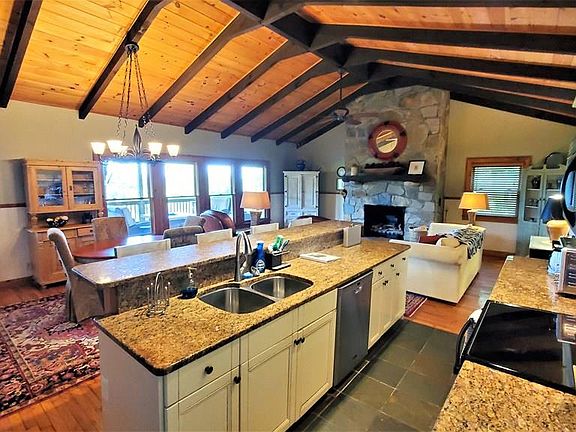If you're looking for a well-maintained , lake view home with gentle access just minutes from downtown Cashiers and around the corner from Lake Glenville, this is it. Even better, this home has a successful vacation rental history, making it an ideal choice for investors. With its perfect size and open floor plan(including the kitchen, dining room and living room), this home is spacious, warm and inviting. On the main level you'll also find a heat generating, stone, gas fireplace(that also can be a wood burning fireplace) two bedrooms, two full baths and one half bath. Then, step outside onto the expansive, covered deck and enjoy the spectacular view of Lake Glenville as well the other amenities the space offers. The home's lower level offers a living room/den, bedroom/den office area, half bath and storage spaces. These features-and more- make this home a rare and much sought-after find in today's real estate marketplace.