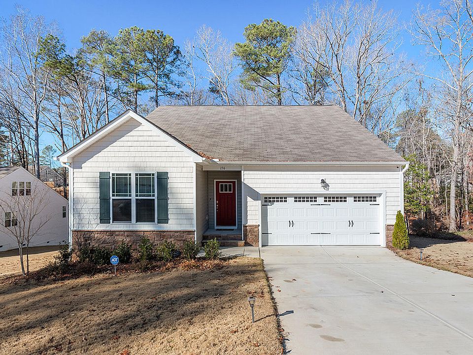 Hard to find like new one level ranch home in incredible Lake Royale Golf Course and lake community. Incredible amenities include 18 hole golf course, 345-acre lake with boating, fishing, community pool, outdoor fitness park, tennis court, basketball court, lakeside clubhouse, two beaches, multiple docks, boat launches. Low maintenance exterior and drought resistant lawn. Spacious 2 car garage. Deep .45-acre lot backs to wooded backdrop. Open flowing floorplan with luxury vinyl floors in common areas and office. Bright sun-filled family room open to kitchen area. Cozy gas log fireplace. Chef's kitchen with gas range, microwave, refrigerator included, walk in pantry, and center island seating. Breakfast room with transom windows. Large owner suite has private bath, dual lavatory vanity, large walk in shower, walk in closet. Convenient mudroom with cubbies, bench, coat hooks right off the garage entry also adjacent to laundry room. Washer / Dryer convey. Generous guest rooms with shared bath plus a home office with it's own closet. Three season outdoor living on screened porch. Tall crawl has plenty of room for storage.