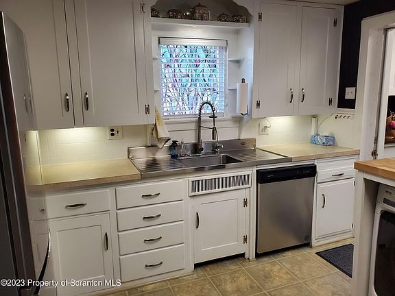 Charming Cape Cod in downtown Factoryville. Enjoy your 3 Bedrooms, 1.5 baths, hardwood floors, new roof, newly paved driveway, with huge pool and deck. Unique basement studio space. Spend your evenings hanging out on your screened in front porch. Walking distance to elementary school and Keystone College., Baths: 1 Bath Lev 2,1 Half Lev 1, Beds: 2+ Bed 2nd, SqFt Fin - Main: 841.00, SqFt Fin - 3rd: 0.00, Tax Information: Available, Modern Kitchen: Y, SqFt Fin - 2nd: 555.00