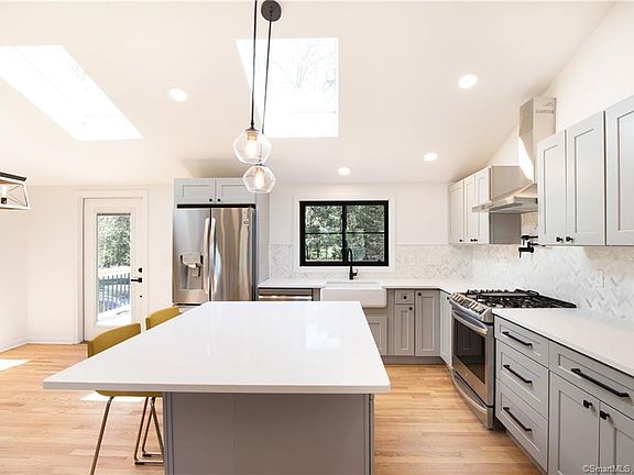 1800sqft and 0.52 usable acres! High-end smart home with the best of efficiency, technology, comfort and convenience! Shuttle to the train station pickup is literally right in front of the house. Easy access to Merritt exit 42. 3 minutes to town and shops on Main St. Open floor plan with brand new designer kitchen with built-in smart and "connected" appliances! Generously sized rooms. THREE Modern bathrooms with speakers for wireless music streaming. Everything is brand new - rebuilt in 2019 with curtain drain around foundation, new concrete floor and guaranteed to stay dry for life. "Alexa" and AirPlay-friendly smart home with $10K high end commercial grade full home automation, home audio, built-in speakers, built-in security cameras with NVR, turn-key whole house wired and wireless connectivity with multiple access points and total coverage inside and outside the house, Wi-Fi controller and 24-port network switch, Nest smart thermostats, CO/smoke alarms, energy star and smart appliances, propane dryer, quality windows, new roof, new large deck, 4+ cars parking at the back. energy star rated high-efficiency 2-zone heating (forced hot air, propane fuel) and cooling (central air), on-demand tankless hot water heater, 100% Energy Star LED recessed lighting, whole home spray foam (closed cell) insulation. 6" industrial grade half round matte black gutters with 5" round down spouts. retaining wall by Vera Lok. 1800 sqft includes 734 sq ft on the fully finished lower level with walkout. Full house "closed cell" spray foam insulation - it is 15% more energy efficient, adds structural integrity and is 2-2.5 times more expensive than commonly used "open cell" spray foam. Detached 2-car garage built in 2022 and includes an upper level for additional storage.