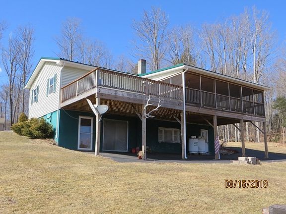 Affordable Ranch style home in a great location with 4.3 acres in Cherry township. Home boasts a large living room, open kitchen with dining area that leads out to a large screened covered deck and a large open deck. Home offers a walk out, unfinished basement that has many possibilities. Paved driveway and parking area and tons of yard space with some landscaping already done. Newer metal roof and vinyl siding. Perfect place to call home.