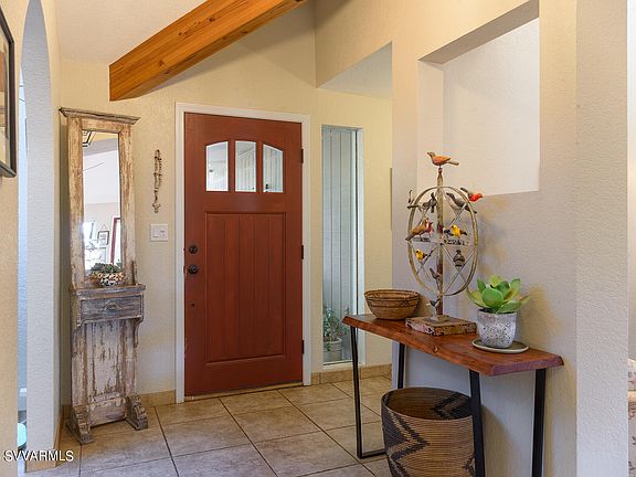 This is an exceptional home. Every room is designer styled to perfection and is lovingly maintained. Walk through the welcoming entry with high beamed ceilings into the the light and bright living/dining area. An alcove is adjacent to the living area for sitting, reading or just relaxing with a perfect view of the fireplace. Gourmet kitchen with an island and LG stainless steel appliances. The MBR is large and easily accommodates a King size bed. 2 add'l nice sized guest BRs with views to the large backyard. The backyard has a covered deck and views of the mesas with an abundant amount of space for entertaining. The office is off the entry and easily accommodates a desk, storage & printer, or use as a study. Small 1 step down into the kitchen/living/dining area. No HOA, STR ok.