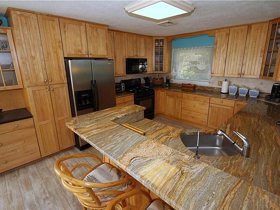 Boaters and Fishermens paradise. This home has been totally remolded and shows beautifully. An open floor plan compliments the spectacular views from the kitchen, family and dining rooms. .Granite counter tops, a tile back splash, custom cabinetry and stainless steel appliances will delight the cook in the family. This versatile floor plan offers a variety of living space for large families or it can be used as a mother/daughter home since the downstairs has a bedroom, full bath and the den can be converted into a kitchen. The living room adjoins a screened in porch and there is a deck off