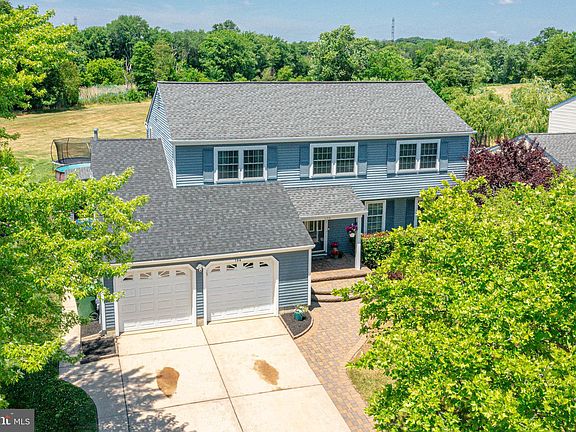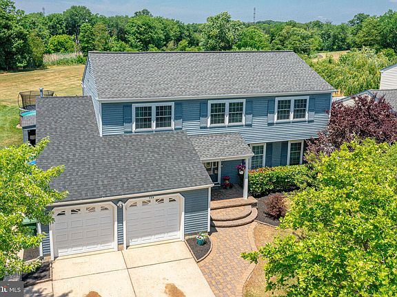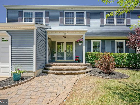 Welcome to 156 Country Farms Road, in the desirable Country Farms Development of Marlton. This is one of the only homes in the development that backs to protected land and the retention pond offering privacy and beautiful views. Step through the double doors into a large foyer that leads to a spacious living room, perfect for greeting guests. The bright kitchen features bay windows, granite countertops, a tile backsplash, a large island, and a walk-in pantry. It opens to a family room with a gas fireplace and built-in shelves. A sliding glass door leads to the backyard's paver patio, built-in 2021. Upstairs, the primary bedroom includes a cozy sitting area, two large closets, and an updated full bathroom. There are three more bedrooms, one big enough to be another primary, and a second full bathroom. The floors were updated in 2022 with luxury vinyl plank flooring, except for the neutral tile in the bathrooms. Outside, enjoy a private backyard with a paver patio, built-in fire pit, and a separate bar area or man cave. The backyard overlooks green pastures and a pond where you can fish. There’s also a walking/exercise trail and lots of wildlife. Additional features include an oversized two-car garage, central air conditioning with a new HVAC system installed in 2021, a crawl space for extra storage, and a laundry room that opens to the garage and backyard. The finished attic is perfect for a reading nook, art area, or playroom. Located near Route 70, 73, and 295, this home offers an easy commute. It’s just 30 minutes to Philadelphia and an hour to the shore. Don’t miss out on making 156 Country Farms Road your new home. Schedule a viewing today!