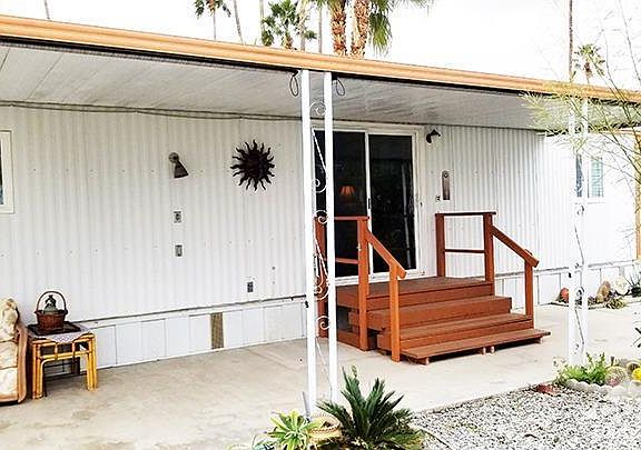 Quaint and Clean on large lot. This Vintage 1966 manufactured home is in excellent move-in condition with Mountain views. Furniture included. Newer furnace and AC. Carport can serve two large vehicles. Lots of activities in Royal Palms. Swimming, club house, putting greens, shuffle board and more. A fantastic value 55 plus community. Also, a dog park for your enjoyment.