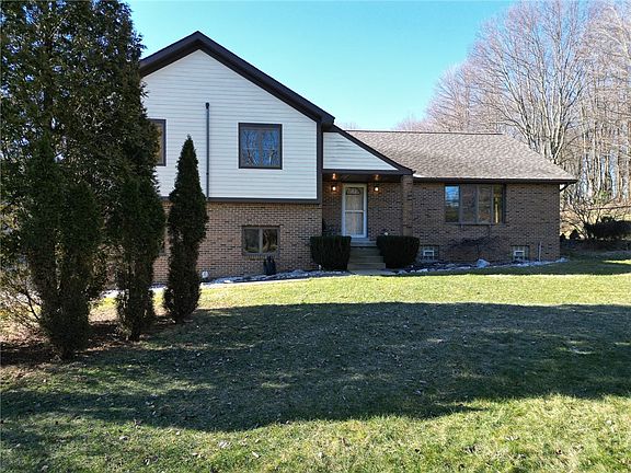 Looking for the perfect country setting in Seneca valley school dist? Don't miss this beauty that sits on over 11 acres! The home is a brick Tudor, with Hardiplank siding. The covered front porch & 2 rear patios are great for relaxing and enjoying the views. Brand new carpet in all 4 large bedrooms, living room & dining room. The main level features a bright open feel with vaulted ceilings & skylights. The owners suite has a renovated full bathroom & a large walk in closet. 3 guest rooms are large with great closet space. Beautiful built-ins featured in the family room along with a wood burning fire place. Wonderful opportunity to work where you live w/ the 2 story detached dream garage. Main level is divided into 2 areas and has an interior garage door that can separate the areas. One side is oversized and has a room built out with extra lighting. Upper level is very open floor plan & was used as the wood shop. Garage is wired for electrical & has heating available on both levels.