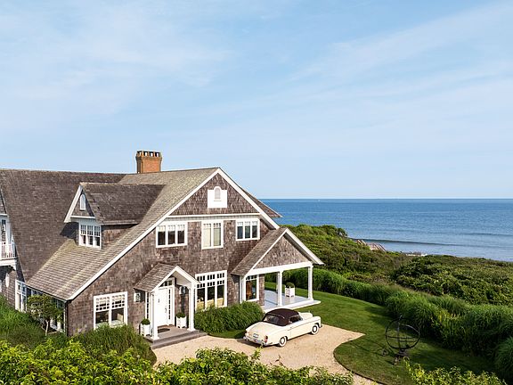 Perched on 4.2 oceanfront acres high on a bluff with a private staircase to over 1000 feet of frontage on one of the best surf breaks in Montauk, Cottage Point, built by the iconic Francis Fleetwood in the legendary style of McKim, Mead, and White, is surrounded by reserve for unobstructed views of the Atlantic Ocean and the majestic bluffs of Montauk from every room. Cottage Point is an unrivaled oceanfront location occupying a peninsula buffered by reserve to the east and west, making the panoramic ocean views a breathtaking combination of pristine nature reserve and the sea. A broad, covered porch offers idyllic sunrise and sunset views over the ocean and leads to the stunning negative edge, salt water pool, custom designed by Loebs and Gordon. As part of the Montauk Association, the grounds were originally laid out by the notable Frederick Law Olmstead, famed designer of both Central Park and Prospect Park. Stanford White designed the homes of the Montauk Association in the 1880s and Cottage Point pays homage to this heritage with reclaimed floor boards from the 1800s, full of character, and beautiful 100 year old mantles on its three fireplaces. Featured on the cover of Architectural Digest with interiors by designer Alexa Hampton, the generous layout features a living room and dining room on the ocean side with walls of windows and French doors to the covered porch. A gourmet eat-in kitchen with timeless soapstone countertops, library, and powder bath complete the main level. A bright and voluminous landing upstairs leads to four en suite bedrooms including the primary suite with fireplace and balcony. The finished lower level offers a bar area, complete with working telephone booth, two additional bedrooms and a full bath. A generational opportunity to own the pure magic of Cottage Point in Montauk.