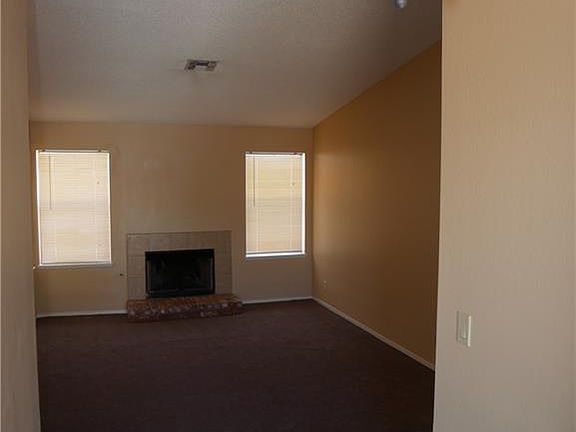 Attached 2 car garage; tiled entry/foyer; carpet flooring throughout except for the wet areas; eat in kitchen with tile flooring, tile countertops, herb garden window; formal dining room; great room with fireplace; vaulted ceiling; master bedroom on with walk in closet; master bath with double sinks, tub/shower combo; laundry area in home; private backyard with desert landscaping.